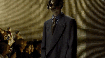 再比如这些在港片中赌王和古惑仔们喜爱的大宽肩西装、超oversize的长款外套,又被一个个看起来拒绝红尘世事的清冷演绎出别样的大佬风情