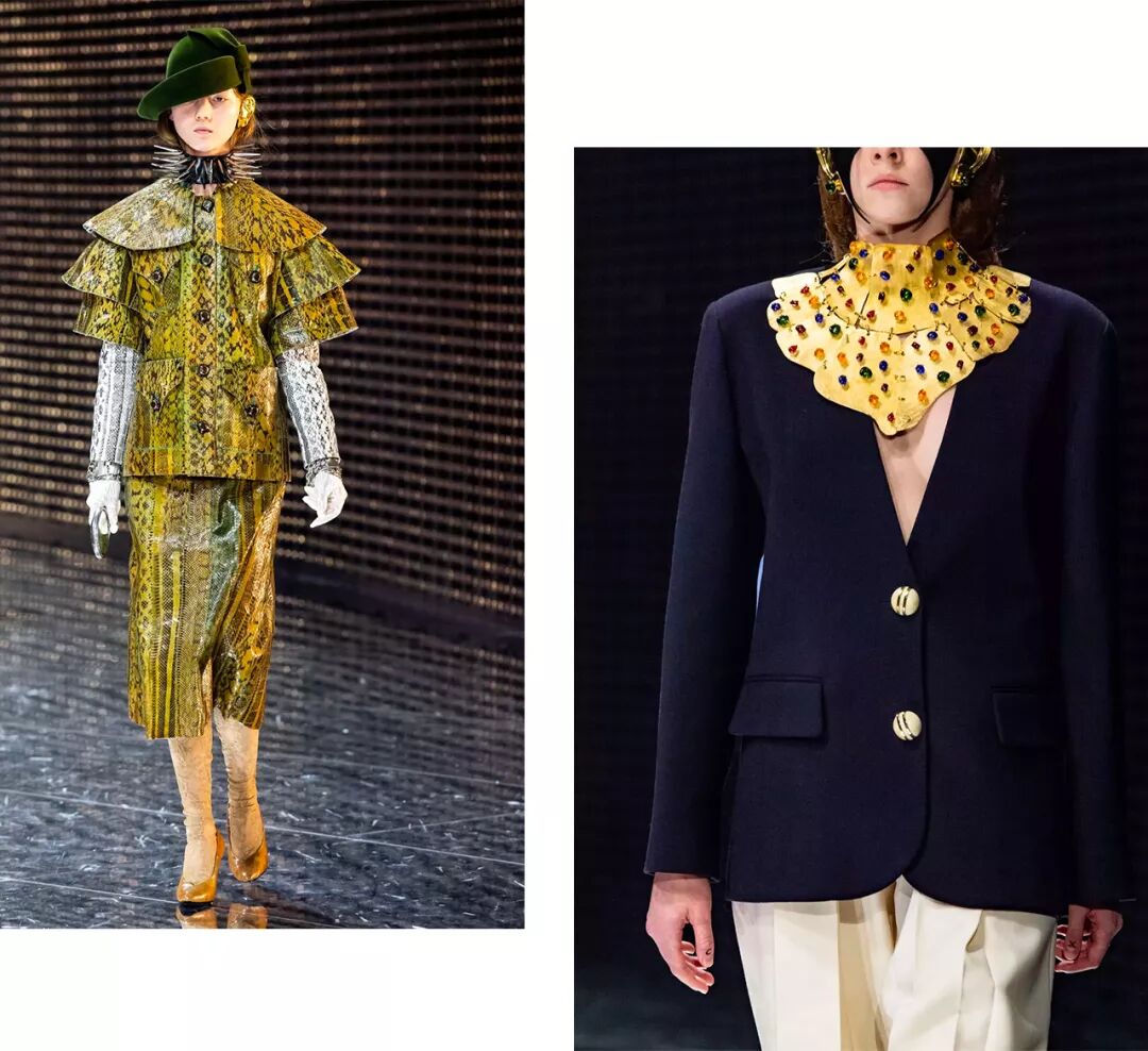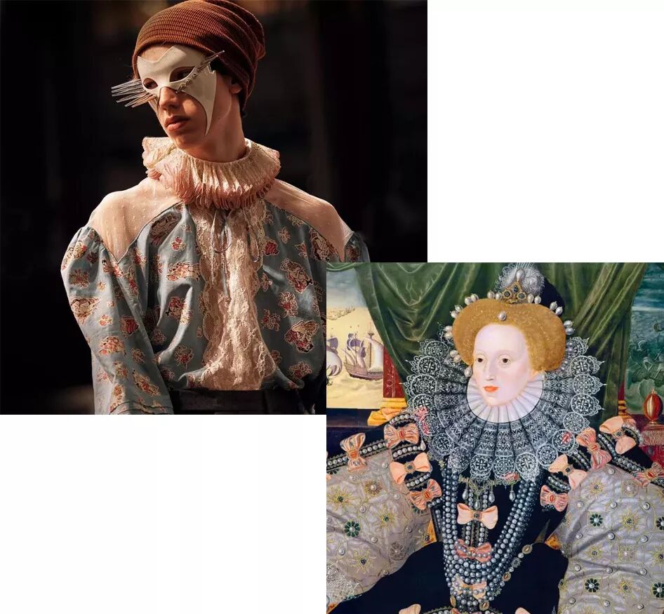 特别是这种高高的、极富戏剧性的拉夫领,让人一下就回想起文艺复兴时期服饰的古典&华丽;无论是在男人还是女人身上,都像一个耀眼的光环为你吸睛