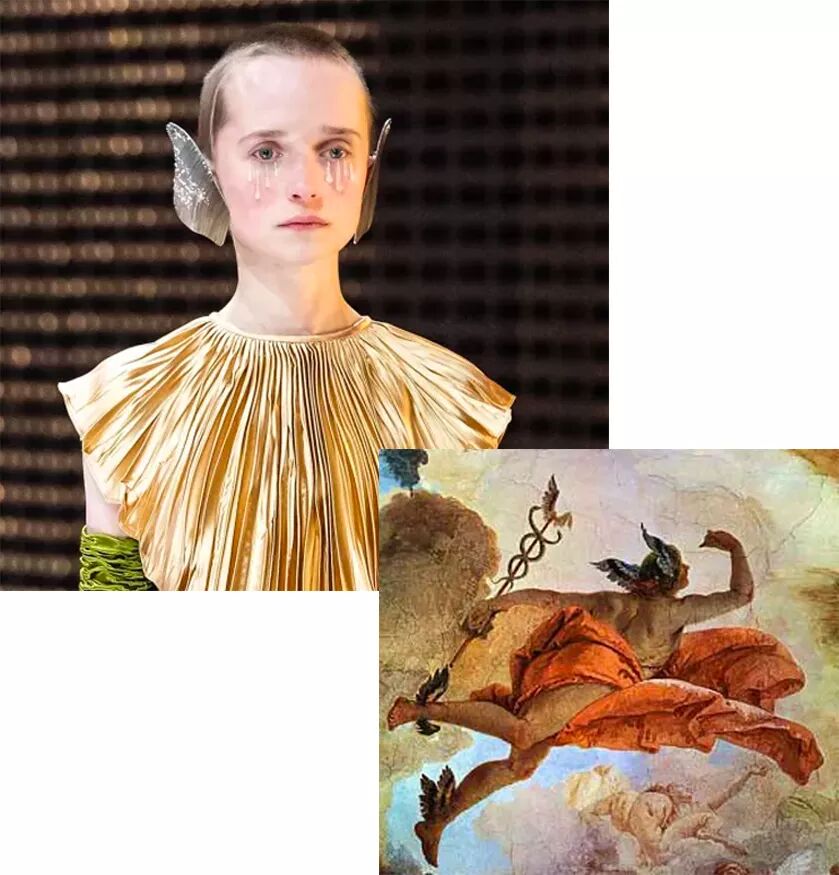 源于《头上长着翅膀的赫耳墨斯》金耳护具(戴耳朵面具的赫耳墨斯正是这次秀票面具代表的那位阴阳神的爸爸…)