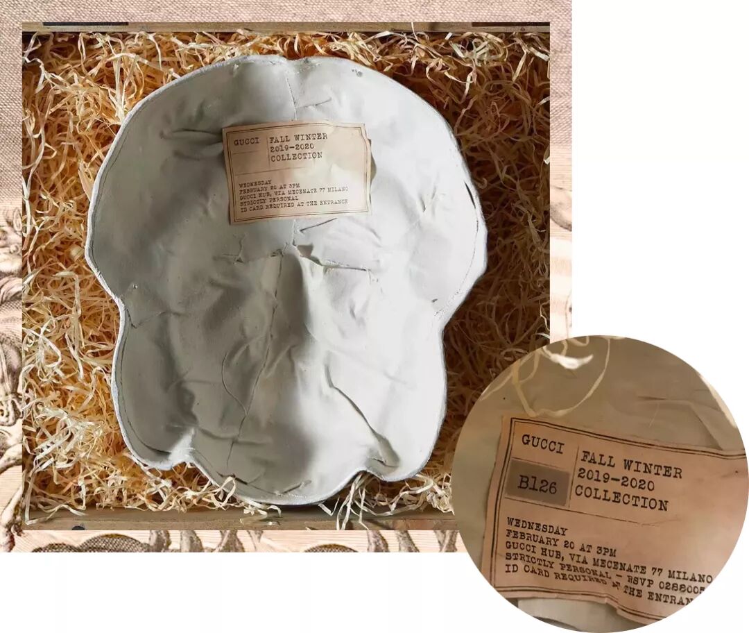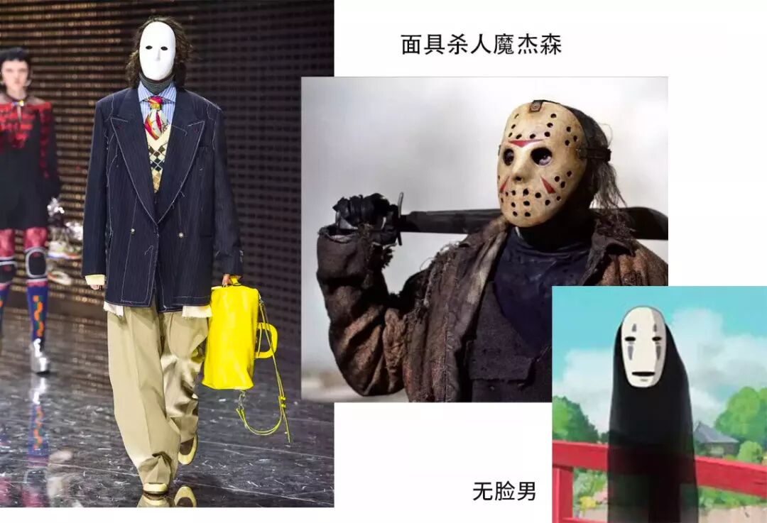 看了面具背面的信息才知道,这是Gucci 2019秋冬大秀的秀票,果然是画风清奇…