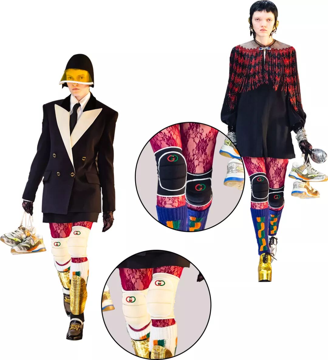 至于这场大秀最能刷新我认知的单品,应该就是昨日登上微博热搜的这一双双#Gucci护膝#了