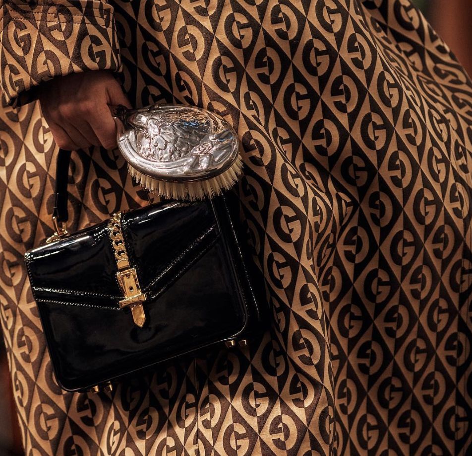 这只你从未见过的复古手拎包是Gucci包袋线的最新力作,是这一季的秀款来的哦(后面会说到)这只名叫Zumi的手袋还没上市就被倪妮拎着看秀去了,只能说Gucci对倪妮的宠爱也是没sei了~