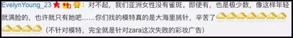 其实,雀斑只是众多“瑕疵”中的一种。ZARA事件真正暴露的,是国人对于“不完美”的集体焦虑,在西方已经在倡导缺陷美的同时,我们还在学习包容缺陷的阶段止步不前。美的形态,真的不止一种。。。