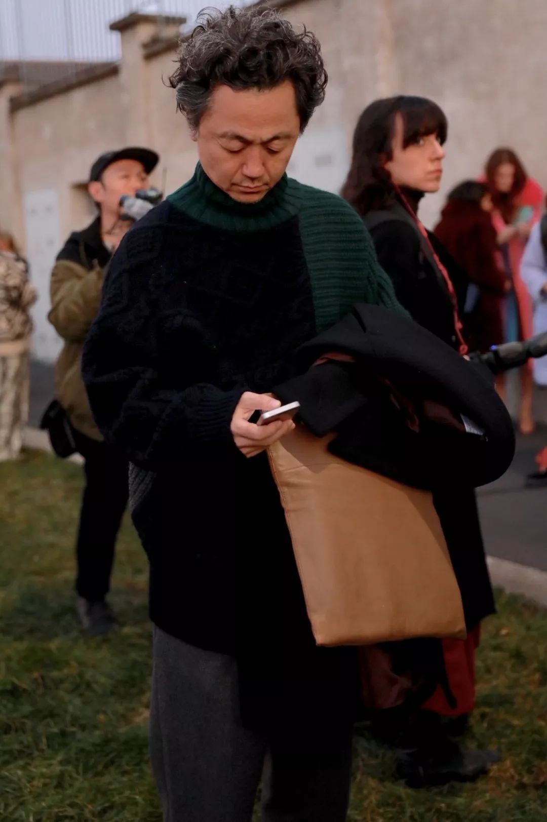 我还发现了Kolor的设计师阿布润一(Junichi Abe),他也是Sacai主理人阿部千登势(Chitose Abe)的老公,同样师出川久保玲。这次也出现在Prada秀上,可见Prada对于同行的吸引力也是很深的。