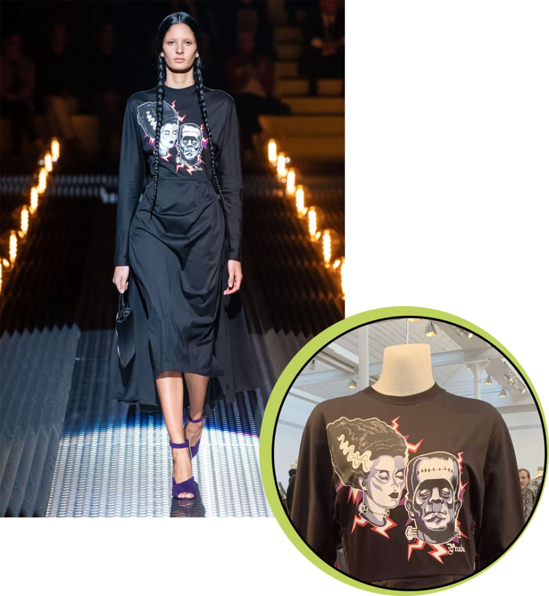 跟19秋冬男装一样,这次的灵感依旧来源于《弗兰肯斯坦》(又名《科学怪人》)。《弗兰肯斯坦》是玛丽·雪莱写的科幻小说:讲的是生物学家维克托·弗兰肯斯坦通过各种尸体拼凑成人型,最后创造出一个怪物。相貌丑陋的怪物却在处处充满敌意的社会中举步维艰,直到不再相信人类且开始报复,最后死于自焚。小说中,他希望维克托·弗兰肯斯坦再制造一个同类出来陪伴他。