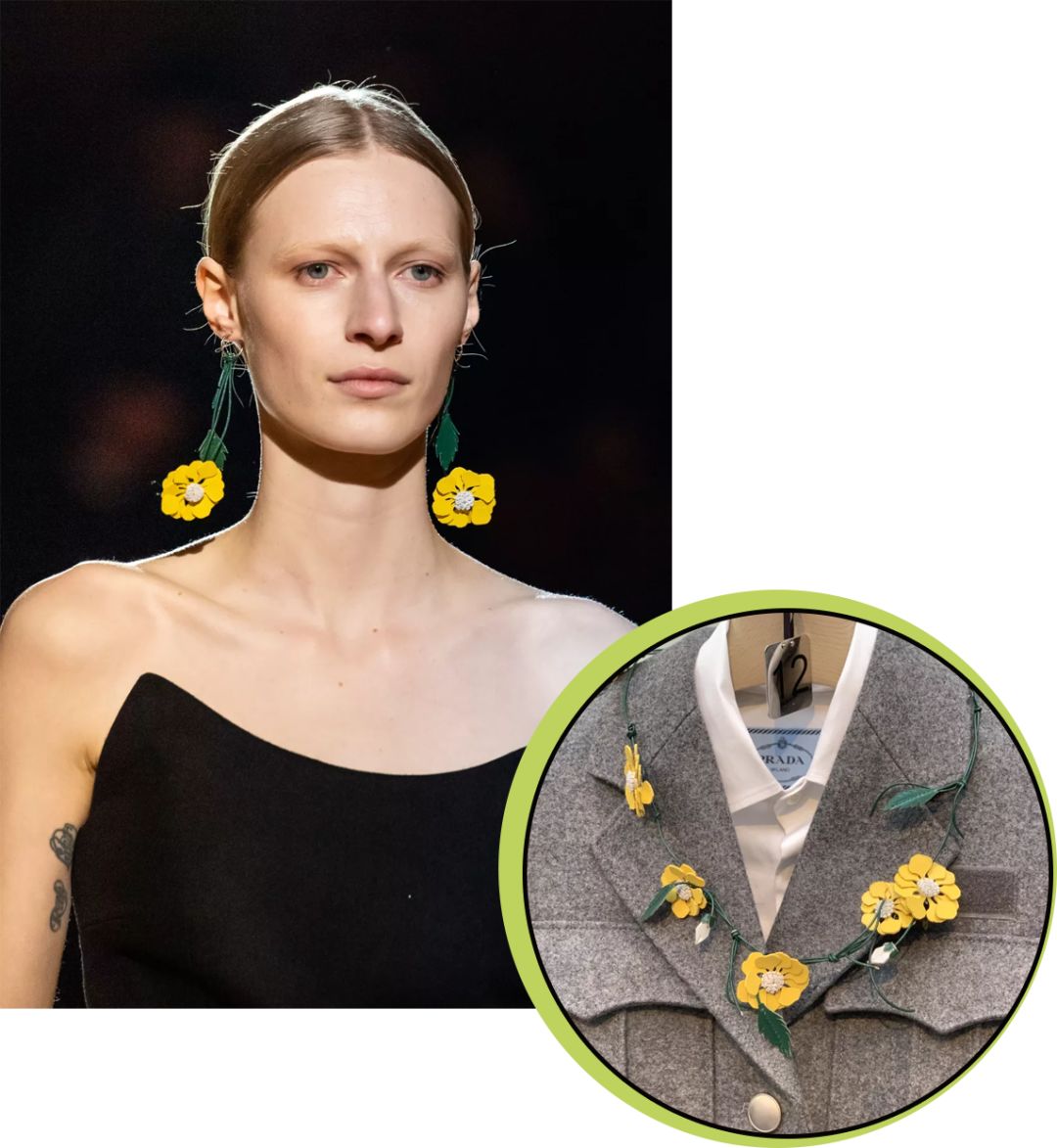 刘雯、Kaia Gerber以及永远的Prada Girl阿福(Freja Beha Erichsen)身上都有着不同的立体花朵。可以看出,哪怕“身在花丛中”,她们都不是想象中的甜美,反而是极具个性的。