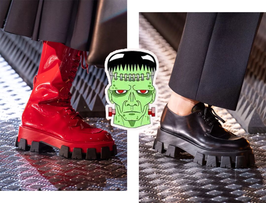 除了服装,鞋履的灵感也出自于此。像齿轮一样形状的鞋底,我想大概是来自于科学怪人脸上的伤口缝合处?