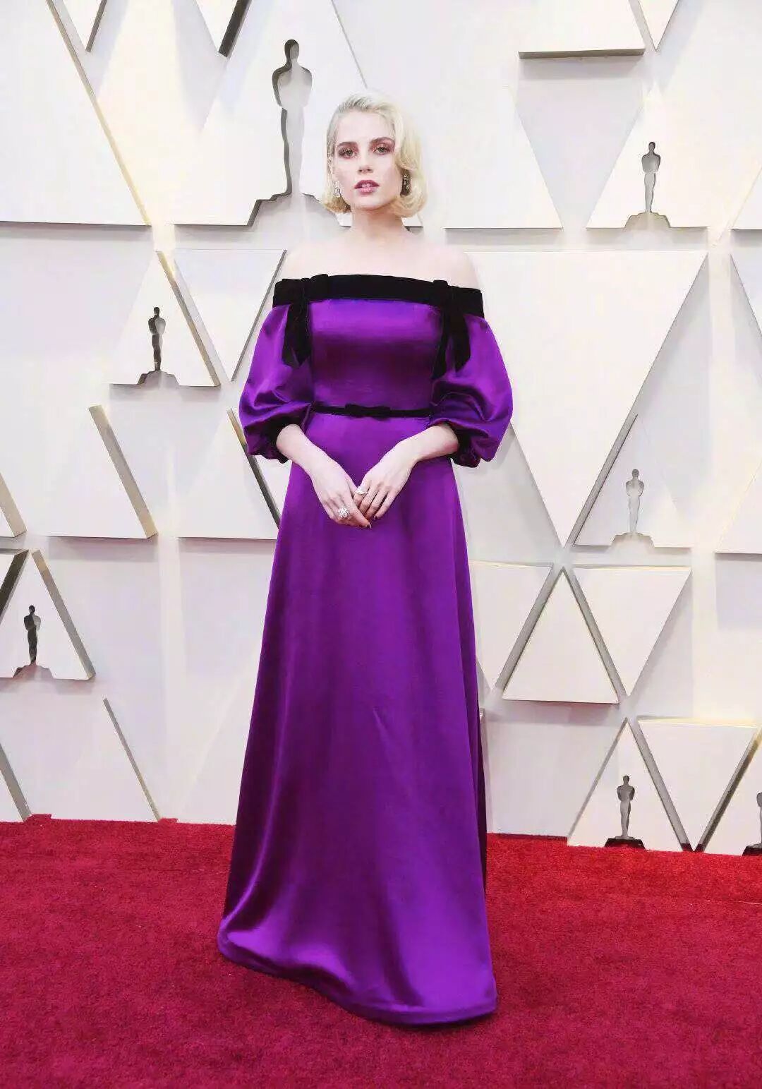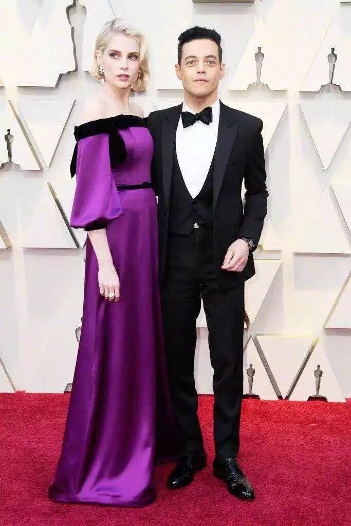 Lucy Boynton身穿紫色抹胸长裙,小美觉得这套驾驭的应该是比较出彩的一套了,而男友Rami Malek则是拿下了最佳男主角,人生赢家妥妥的。