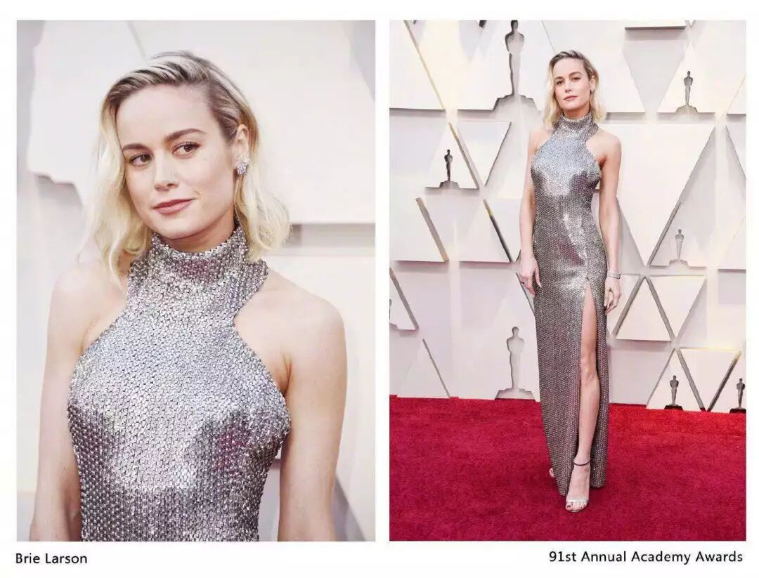 惊奇队长Brie Larson身穿银色亮片开衩长裙,非常迷人优雅~