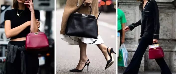 Peekaboo是一款融合度特别高的包包,它可以很轻松的融入你的不同造型。搭配正式的衣服,它可以变得干练又优雅,非常适合职场女强人和成熟女性,Peekaboo共有三种尺寸——迷你、常规和超大。材质方面有牛皮和蛇皮等珍稀皮革。