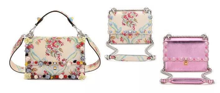 粉嫩的颜色、彩绘花朵、蝴蝶结、波浪边……Kan I系列可以说是FENDI包袋中最具少女心的系列了。它的设计灵感来自法国玛丽皇后的洛可可风格,除了颜色上的变化,它还曾结合方形铆钉、FF logo,演变出不同的风情。