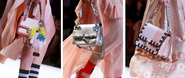 严格来说它不属于包包,但是包包不可或缺的点睛物。它是FENDI的创意总监,享有终身合同的老佛爷karl设计的。(“老佛爷”离开了,这些包包和模特也成为了经典中的经典)