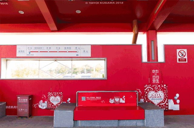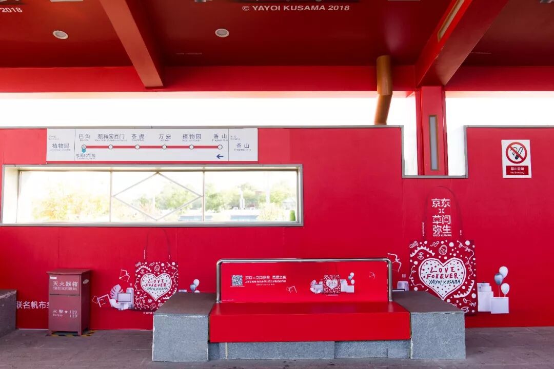 没错!这次,京东不仅用红、黄、白三个高饱和经典色,将西郊线电车“摇身一变”为京东X草间弥生 彩色艺术电车,还将香山站整个包下,用经典波点元素打造“以爱之名——京东X草间弥生”主题车站!