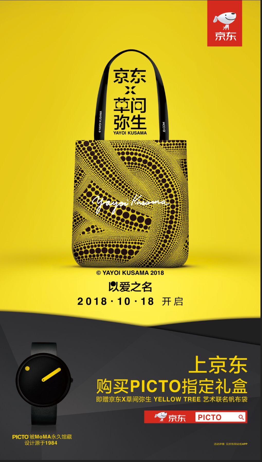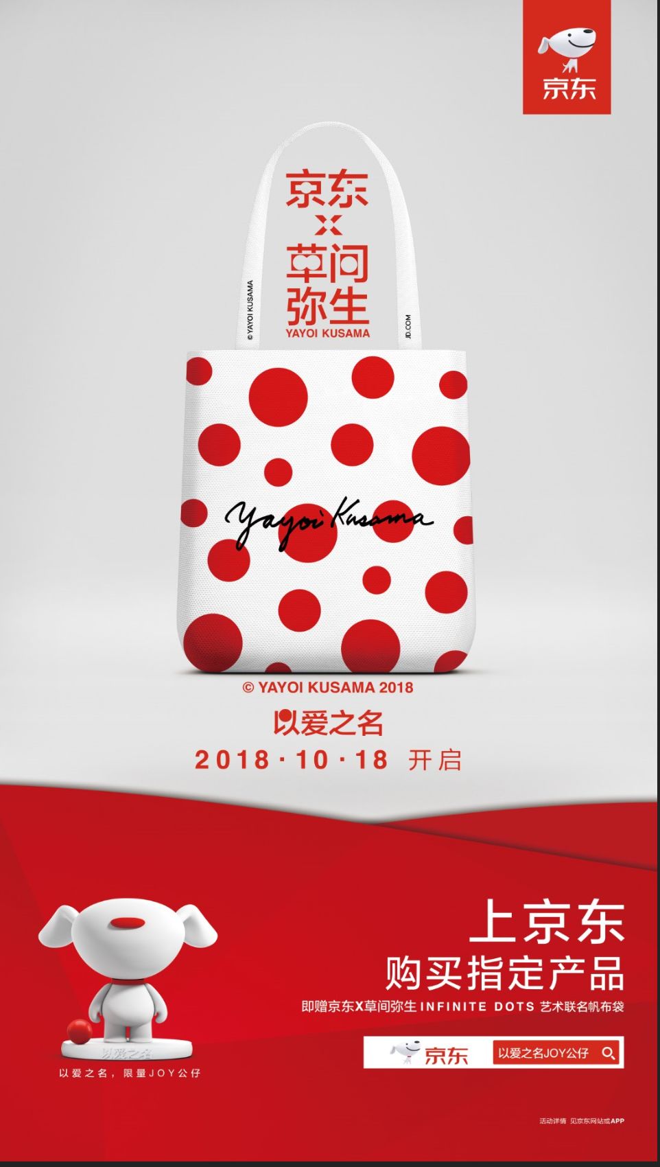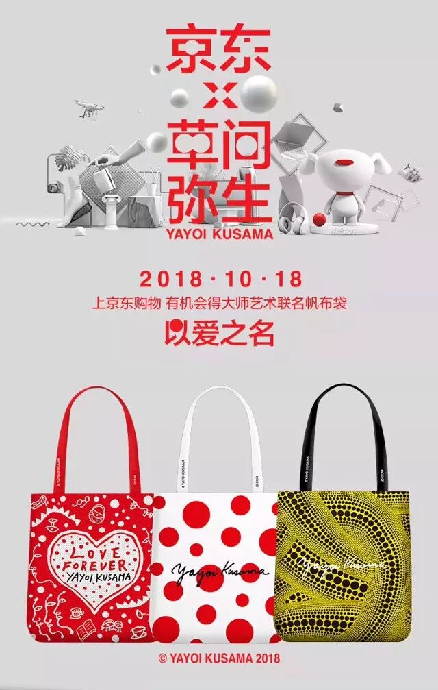 而这一次,除了让北京的朋友们可以随时坐上特别的西郊线到草间弥生元素主题车站打卡拍照,京东还邀请草间弥生用她最擅长的波点元素,创造了“以爱之名”为主题的3款艺术联名独家限量帆布袋,在10月18日正式上线!