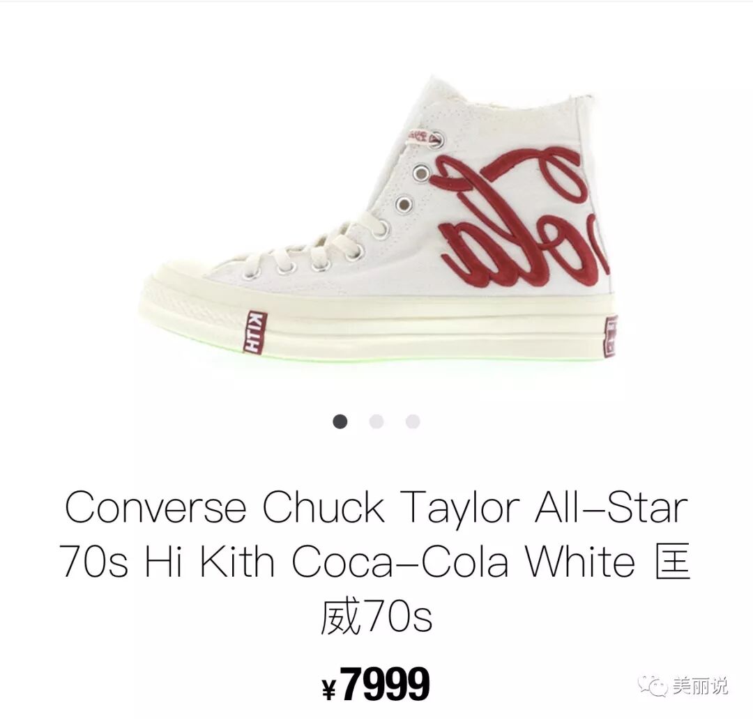 比如2017年KITH x Coca cola x Converse三方联名的帆布鞋,当时售价3339元/双。