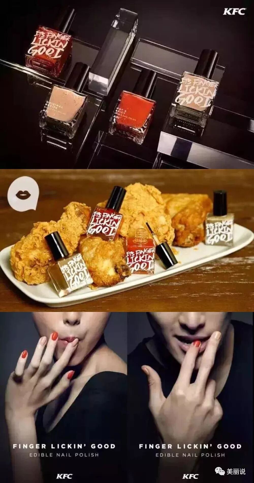 比如2016年,KFC香港餐厅就推出了原味和香辣味两款可食用指甲油。