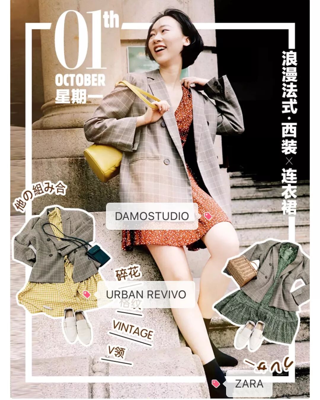 经典的格纹西装搭配浪漫的碎花连衣裙,复古中带着浓浓的法式优雅。选择一件彩色连衣裙作为内搭,能很好协调西装的正式感,浪漫指数飙升~
