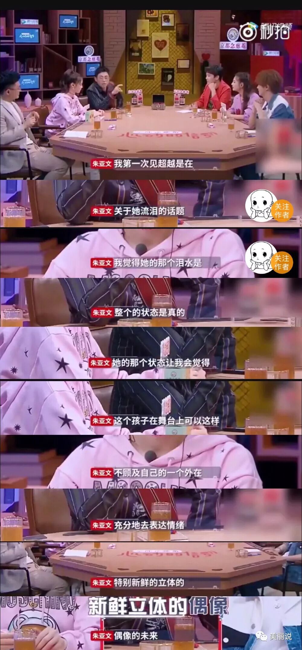 同台的朱亚文对她的评价也从一个扁平的爱哭的女孩变成了一个立体的偶像。
