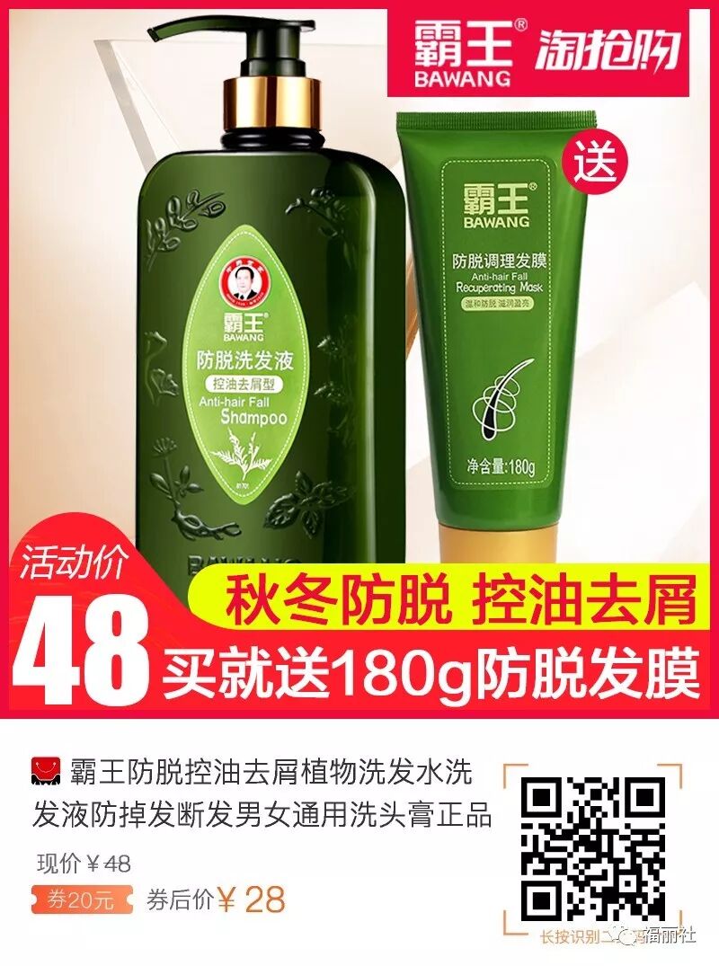 【败姐严选】霸王 防脱洗发水400ml,萃取植物原液,控油去屑的同时,有效预防缓解脱发,券后28,现在入送防脱调理发膜~