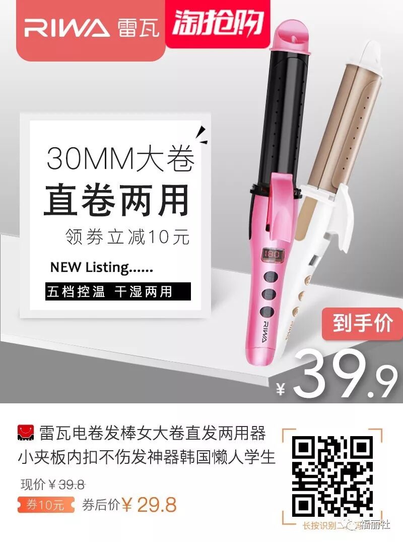 【败姐严选】雷瓦 直卷两用内扣电卷发棒,一个能卷直两用的卷发棒,出门前五分钟直接搞定一头乱发,超方便呢! 做个精致的女孩,出门啦~
