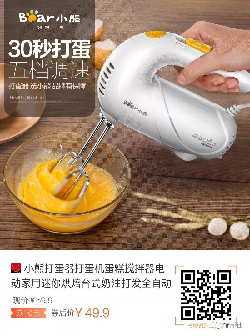 【败姐严选】小熊 电动打蛋器,双棒配置,30秒快速打蛋,券后49.9,用来烘焙真的太方便了~