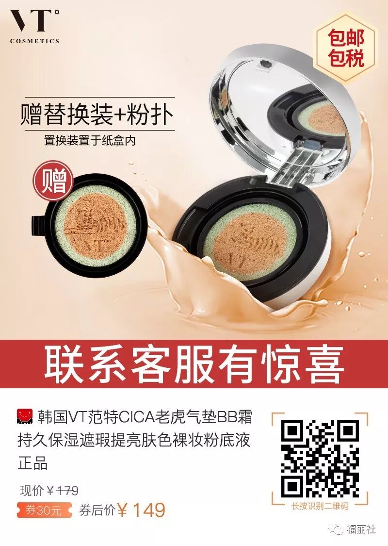 【败姐严选】韩国VT范特CICA老虎气垫BB霜,券后149,持久保湿提亮,遮瑕又养肤,里面的镇静成分特别适合换季敏感期~