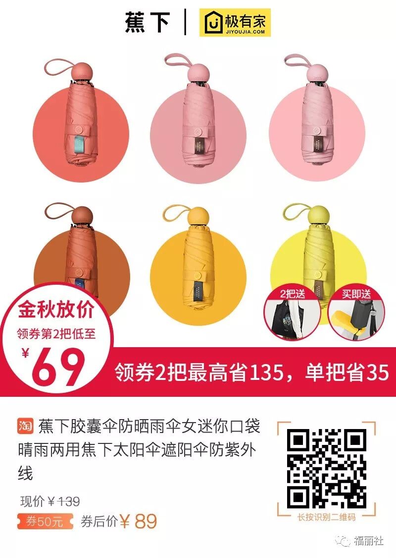 【败姐严选】BANANAUNDER蕉下胶囊伞 防晒晴雨两用,一把能装进口袋的晴雨伞,轻松放进小包包,做一个精致的猪猪女孩从蕉下小黑伞开始~