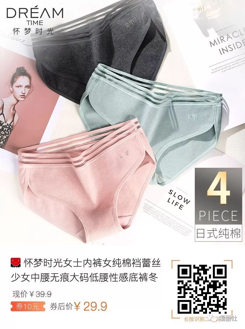 【败姐严选】怀梦 日本风纯棉无痕呼吸内裤4条 ,又是怀梦家,他家的东西质量都超好的,日本风剪裁风格,无痕呼吸透气料,蕾丝花边,尤其夏天来了,这穿了和没穿一样