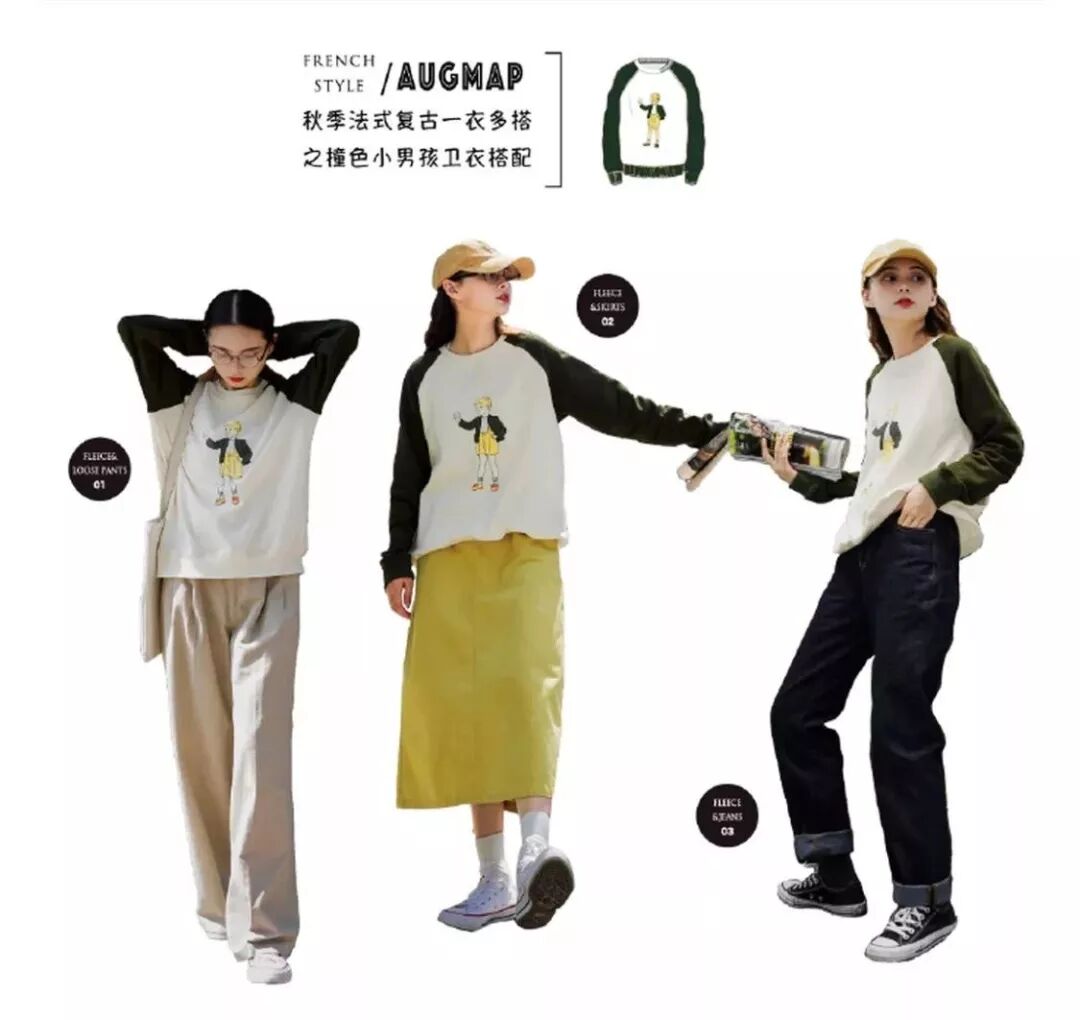 LOOK 1:牛仔裤+插肩袖卫衣+渔夫帽+帆布鞋