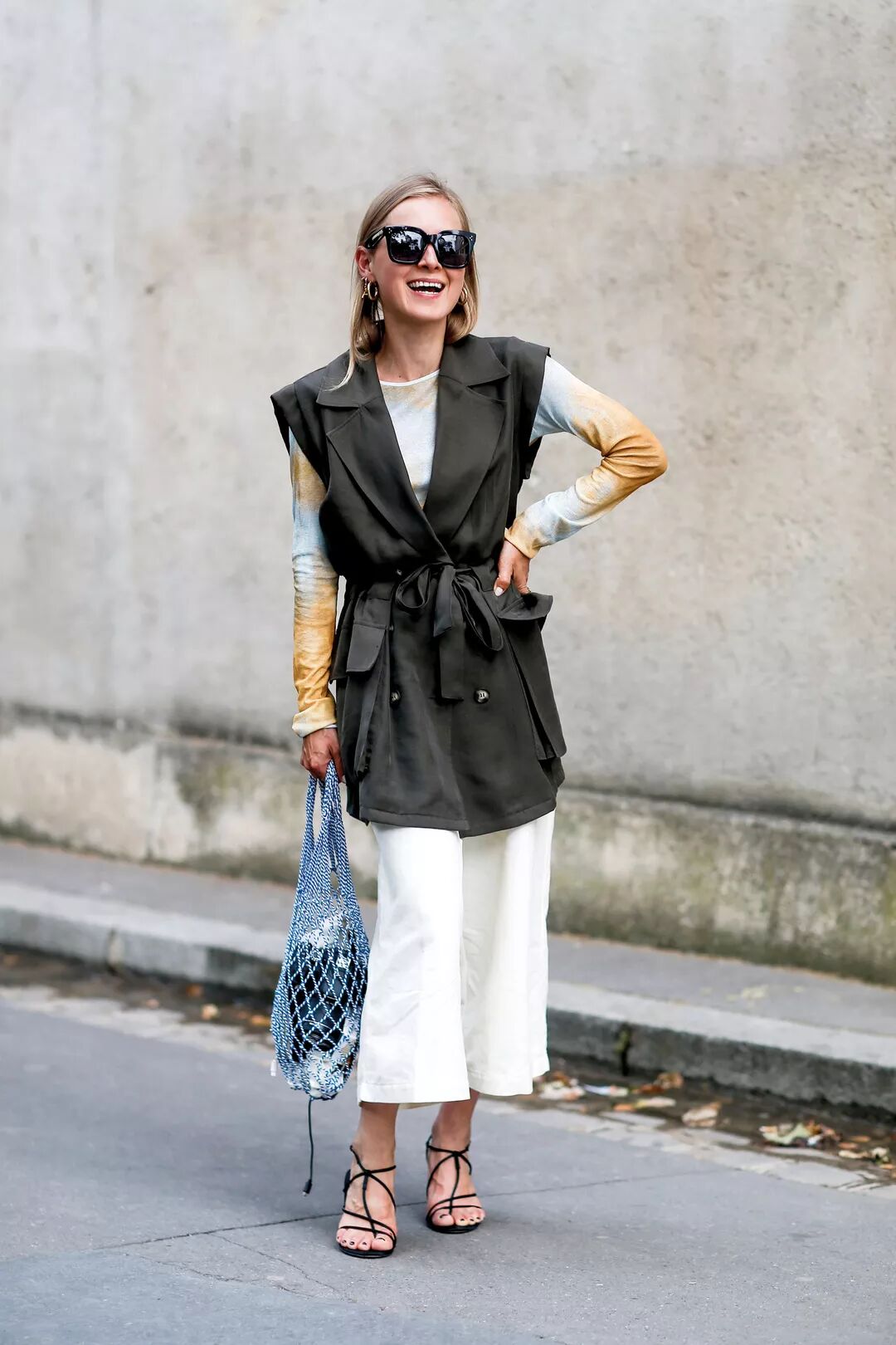 这几天,阔腿裤简直在时尚圈火了个底朝天。无论什么简单的单品,只要遇上阔腿裤便能立马充满时髦感。长款无袖西装简直是阔腿裤的最佳伴侣,两者的拔高效果实在太强。若想冲破无袖西装的正式,内搭一些休闲风的单品便可以。