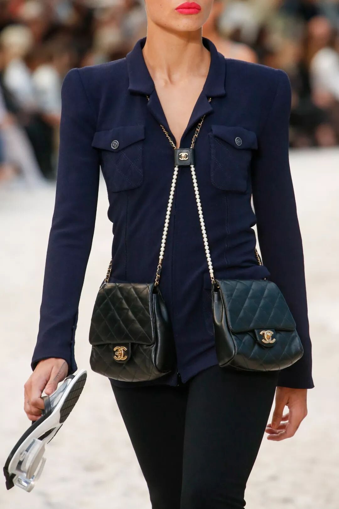 秀场上最先吸引我的除了model小姐姐们光脚踩沙滩,另外就是这一季新出的各种“双肩”链条包!