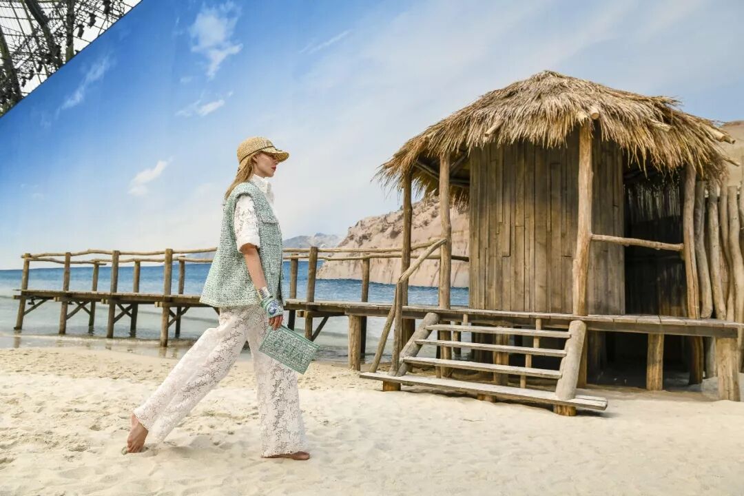 这次的秀场是在巴黎大皇宫,然而里面却布置成了——IMAX巨幕尺寸的海景背幕板