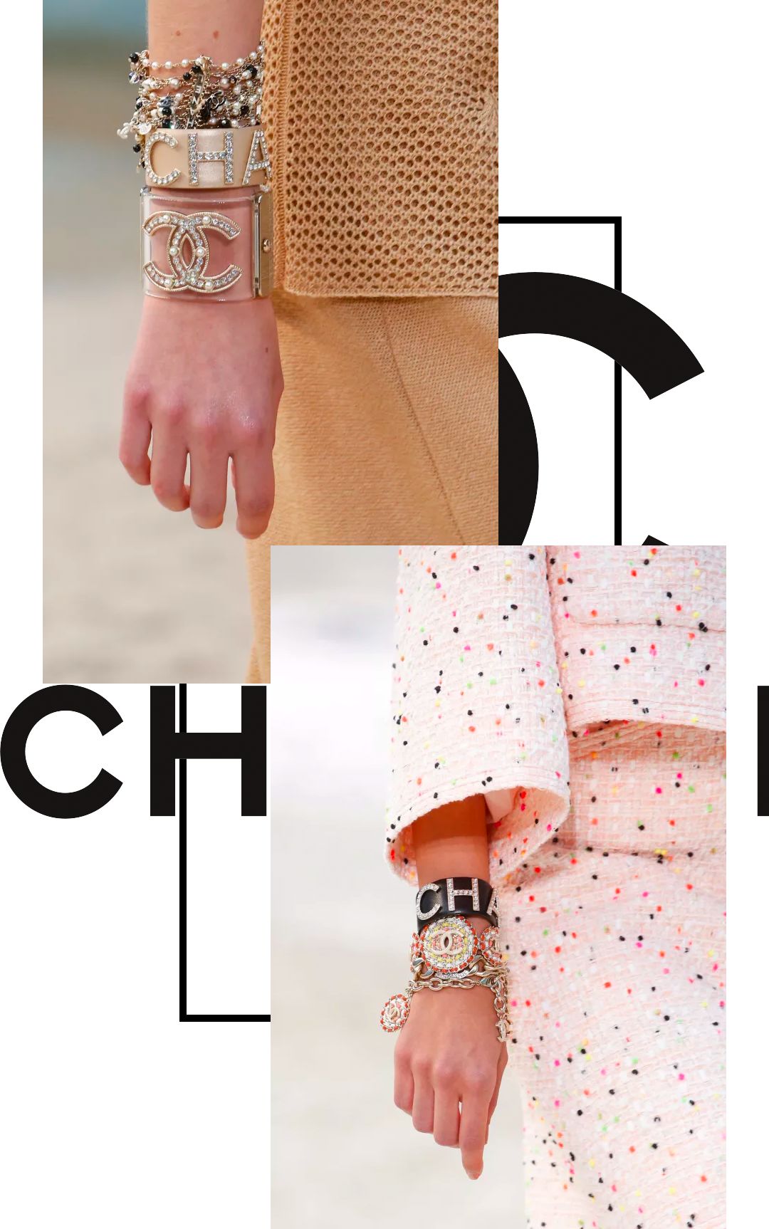最大的变化就是:这一季的配饰,无论从耳环到项链、从帽子到腰带,全都融入了超明显的Chanel的logo字眼