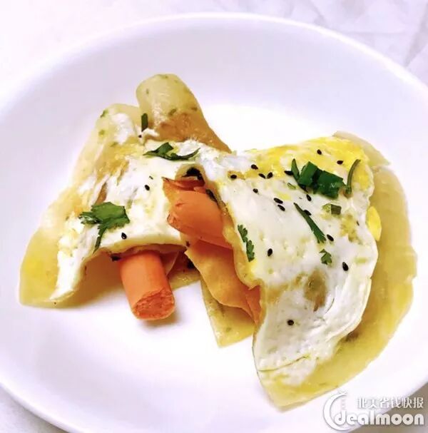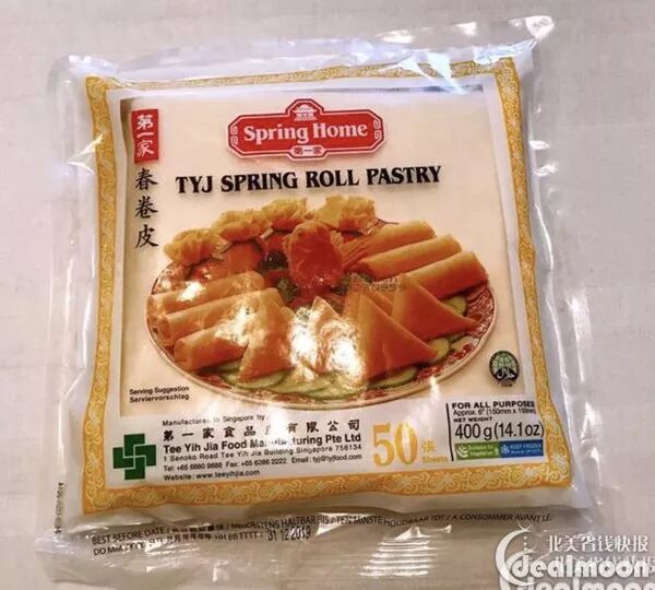今天就在香港超市看见了立刻就买了,2包才8.9美刀。一包5片面皮,一包蒜蓉辣酱,一包烧烤调料,每片面皮之间都用保鲜膜区隔开了,拿取很方便。老公吃了说:这个好好吃啊,可以跟煎饼果子竞争了啊,