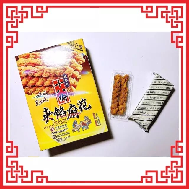 酥脆好吃的小麻花。上面有各种香料加馅儿,味道丰富有层次感,香香甜甜,也不会过于油腻。