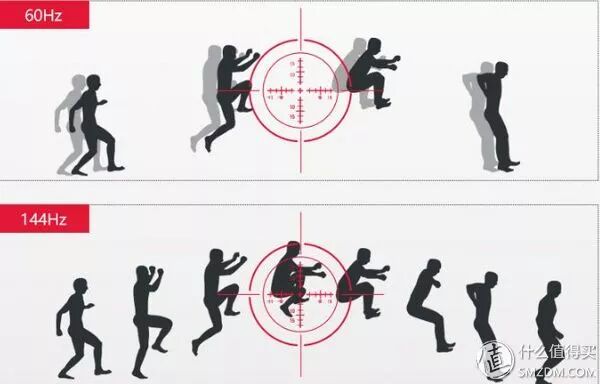 普通显示器的刷新率一般为60Hz,电竞显示器刷新率至少是在144Hz,高的刷新率可以体验到的区别最明显的是在FPS也就是射击类游戏当中。
