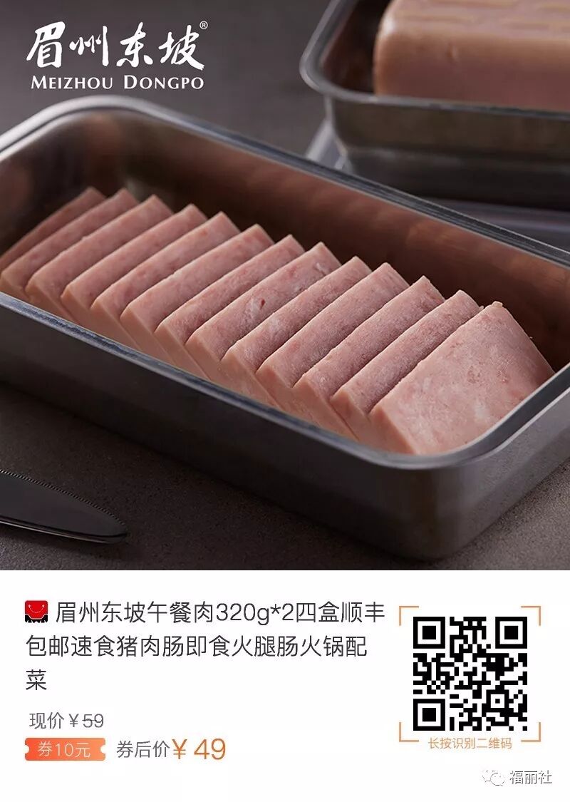 【败姐严选】眉州东坡午餐肉320g`2四盒即食,券后49,油煎一些超级好吃!涮火锅 三明治 必备~