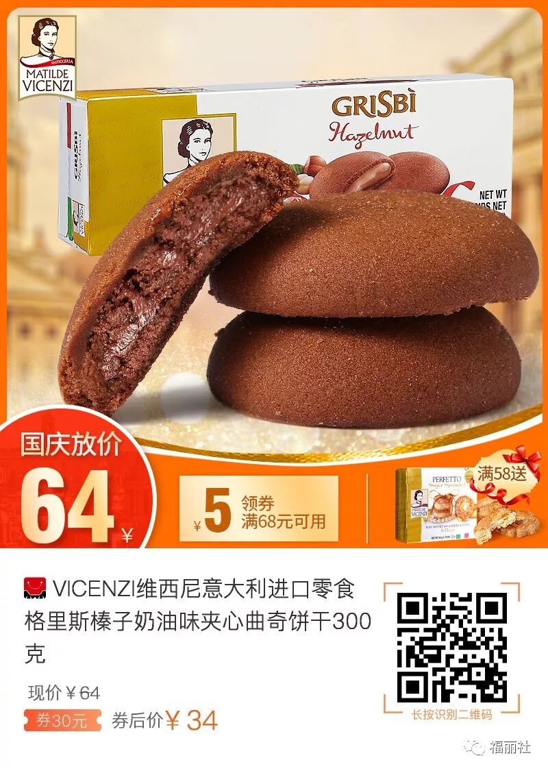 【败姐严选】VICENZI维西尼饼干榛子奶油味夹心曲奇饼干300克,券后34,和巧克力的完美搭配~爱吃甜食的闭着眼睛入啊!