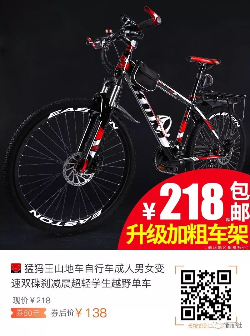 【败姐严选】猛犸王 变速山地车碟刹自行车,很理想的一款车,车子非常帅气,骑行非常畅快,变档也很顺利, 前叉减震也很不错,非常好骑,很省力气,高碳钢车架骑起来轻便,骑着很舒服,浪到飞起!
