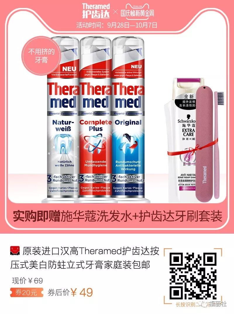 【败姐严选】汉高Theramed官方旗舰店护齿牙膏3支装,德国原装进口的,汉高按压式牙膏!多种功效可以选择,全家人都可以用哦~