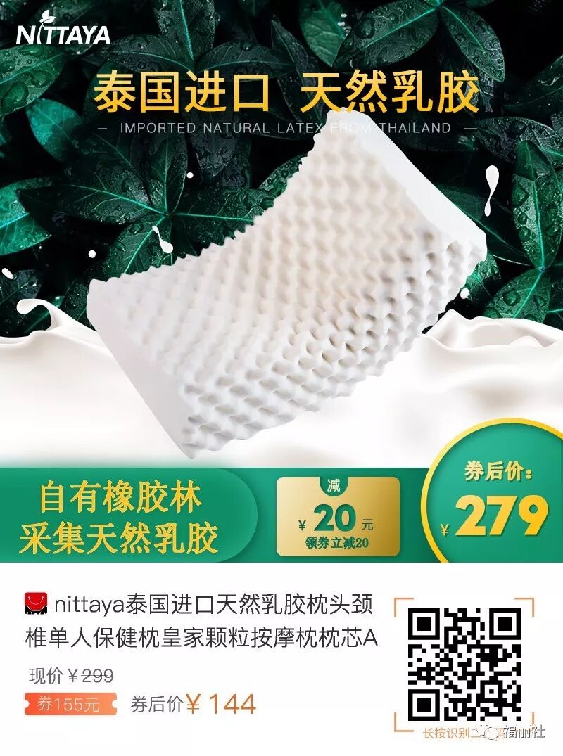 【败姐严选】nittaya泰国进口天然乳胶枕头颈椎单人,这款是半价券!到手144,价格很划算,皇家颗粒按摩枕枕芯,推荐!