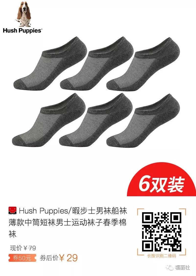 【败姐严选】暇步士 男女士船袜6双,券后29,精梳棉面料,品牌质量,推荐过很多次了,反馈还不错!