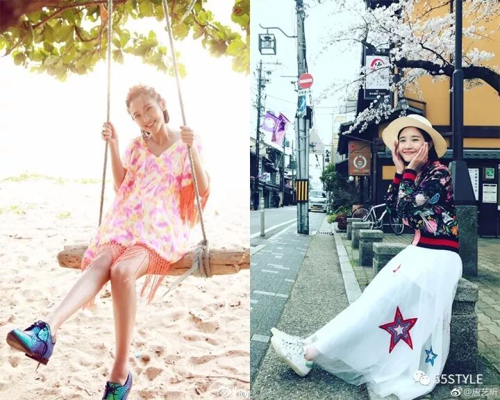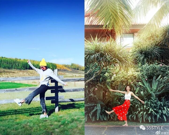无论是优雅沉静的托腮,还是笑靥如花;无论是静坐只留背影,还是远景伸展四肢,动起来就会收到惊喜大片哟!当然,刘雯的留白法+倪妮的大字型,也是拉长整体身材比例的好方法哦!