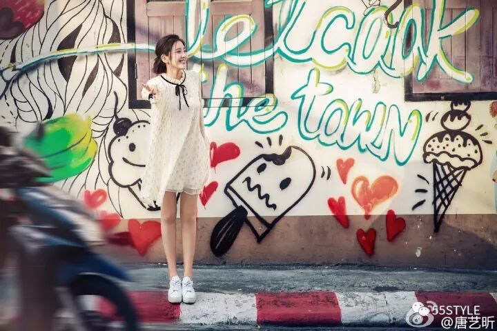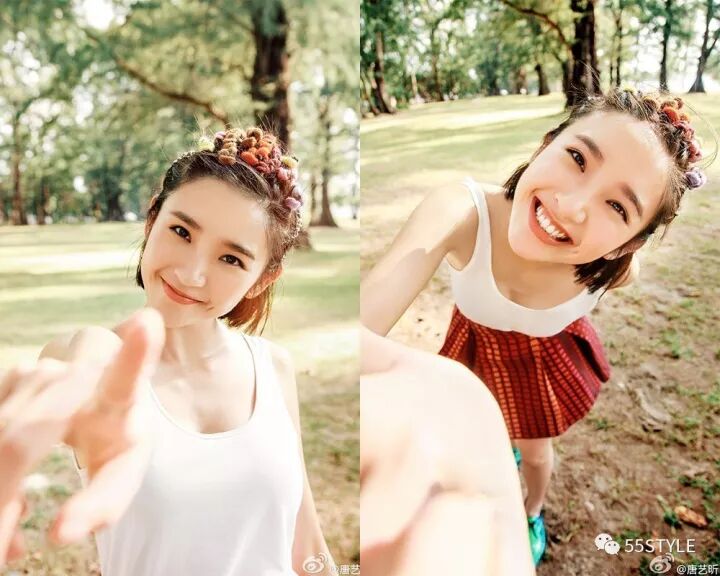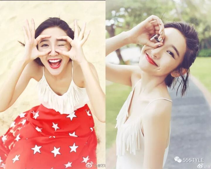 拍照大神都知道照片光线很重要,可以说每个爱美的女生都会注重光线明暗变化的好处,就像前边讲的大表姐,合理利用光线,任你在女神和小清新之前来回切换。这里的唐艺昕面对阳光展示标志的梨涡笑,正能量满满,这就是小仙女本人啊!