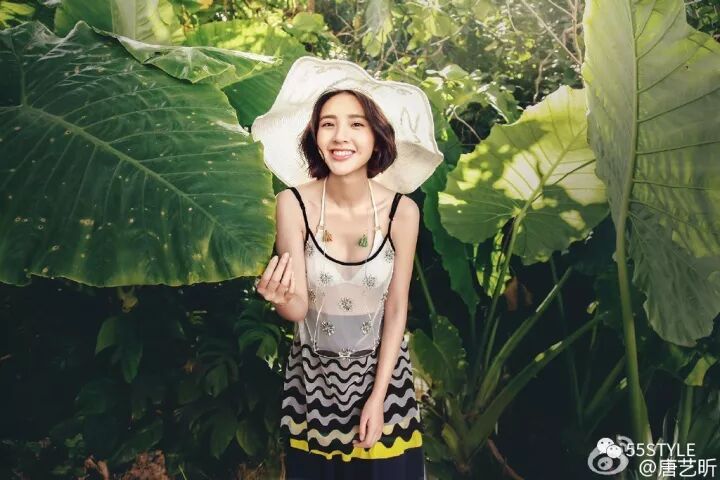想要拍出唐艺昕的活力范儿,去热带度假的宝宝们要记好咯!和生机勃勃的绿色植物合影,宽檐帽绝对是度假拍照不可获取的单品,遮阳的同时还可以帮助你显脸小。