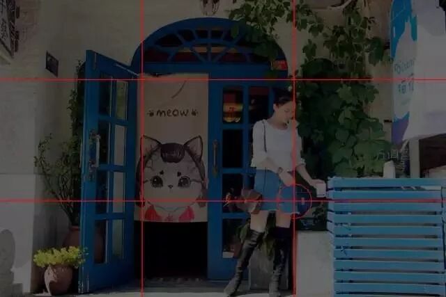 拍大全景的时候,一定注意水平线要平,照片底线位于双脚地方,会显得人高腿长。