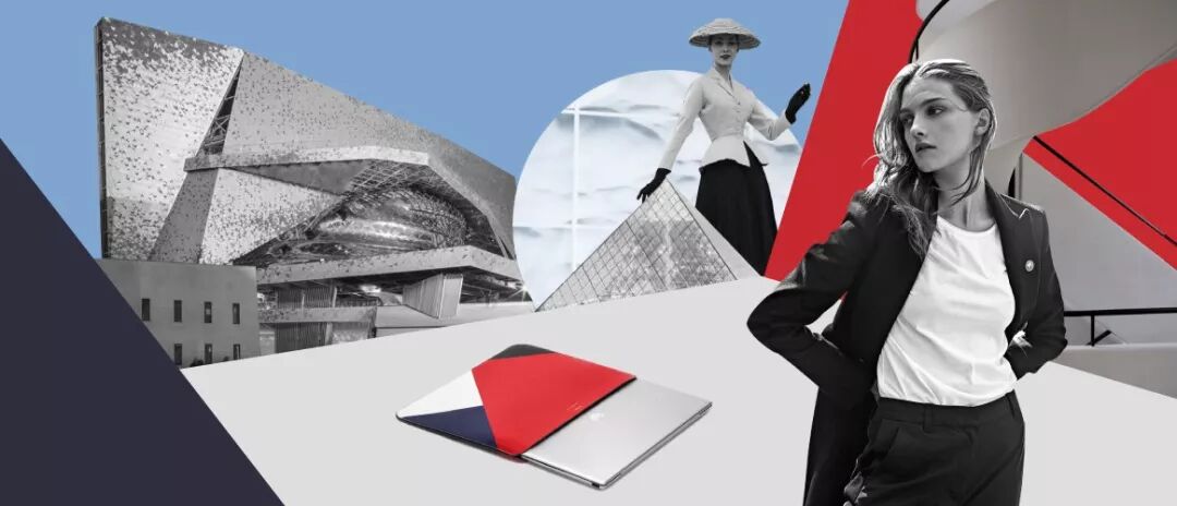 其中,蒙德里安的极简艺术巧思与法国经典的配色加以融合,让电脑内胆包的色彩与图像在空间中无限延伸,与华为创造无限连接与沟通的主题巧妙契合。