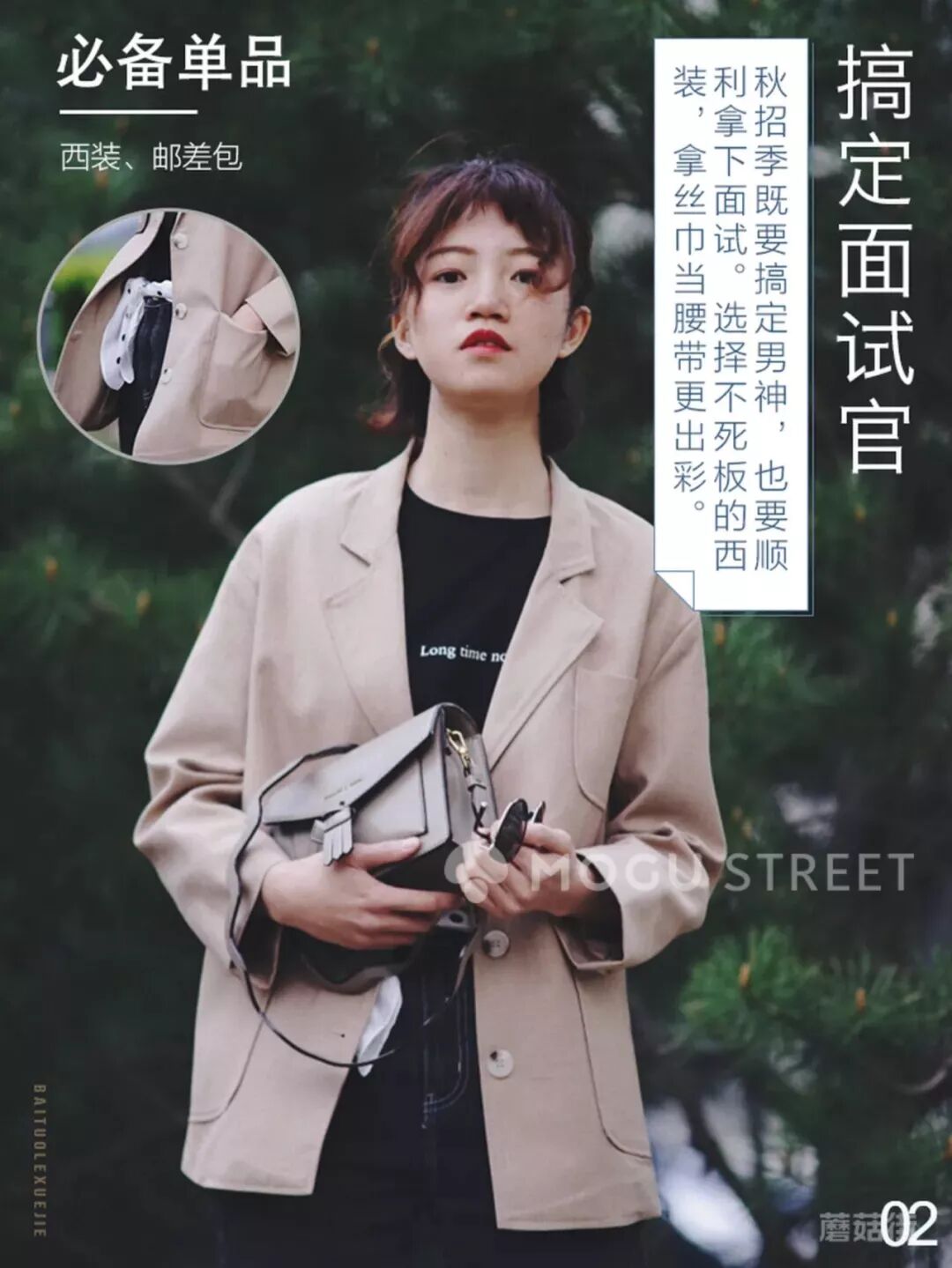 随着升入大四,新一波的校招也正式打响啦!不管是男神还是面试官,统统都要搞定!浅咖色的休闲西装搭配牛仔裤,丝巾当作腰带点缀,使整体更加出彩。