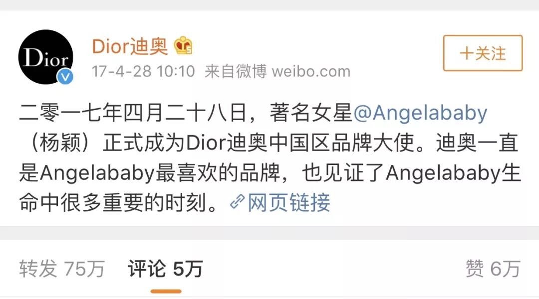 - Dior的批发大使资源差距到底有多大?一个angelababy顶9个。
