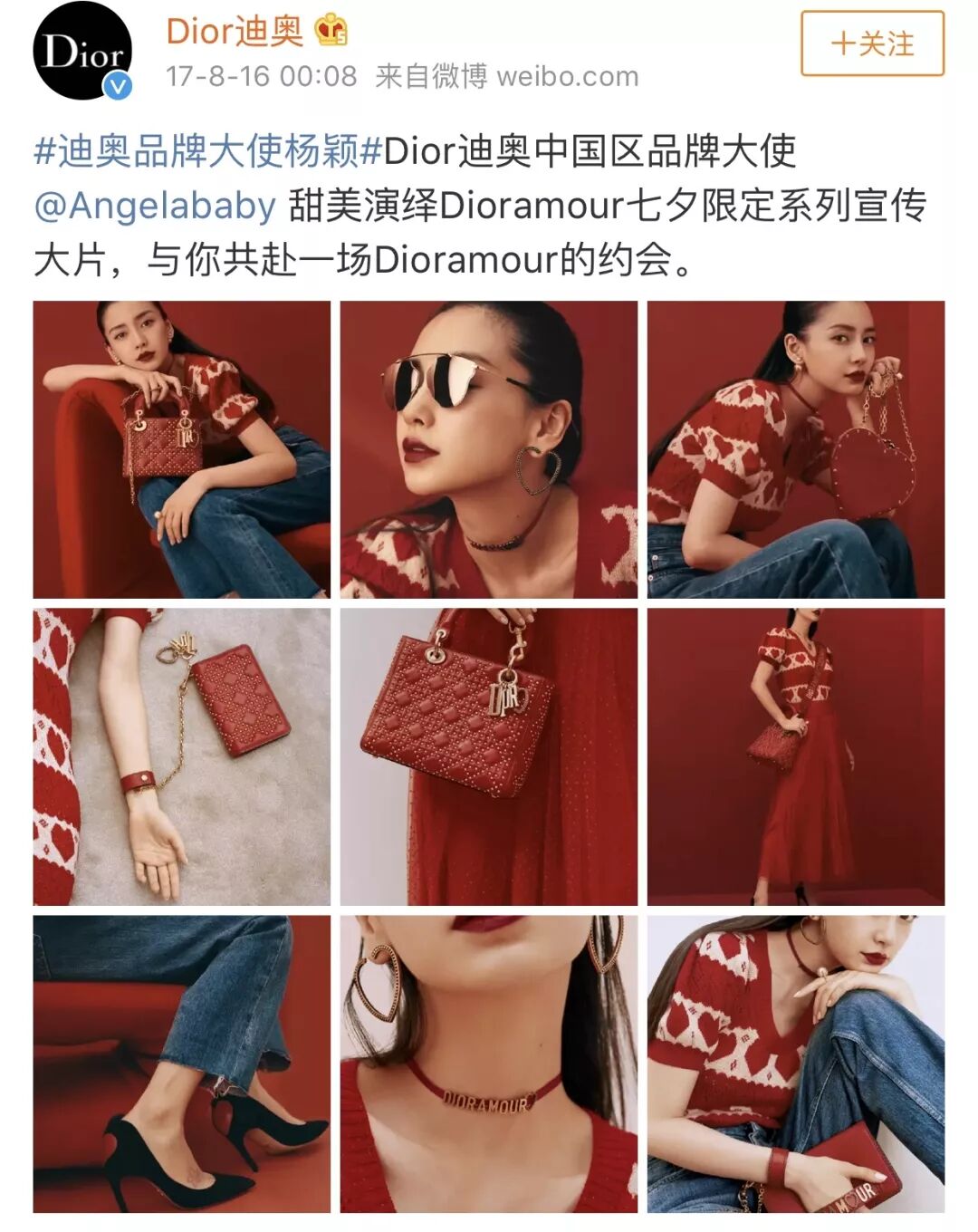 杨颖本人也是不遗余力疯狂带Dior品牌为其宣推。